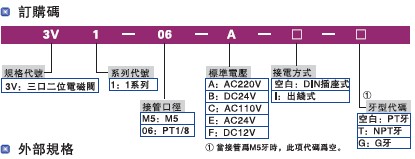 二:3V1系列電磁閥規(guī)格: